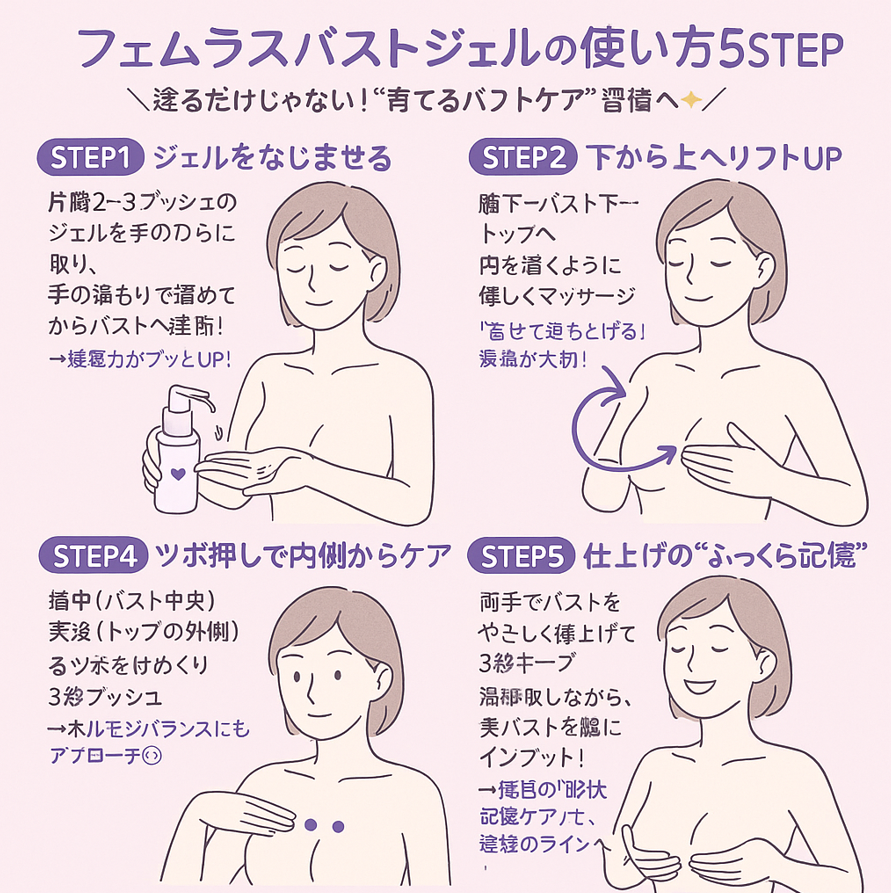 「ハリがなくなった」「形が崩れてきた」「もっとボリュームがほしい」そんな声に応えるのが、フェムラスバストジェル。