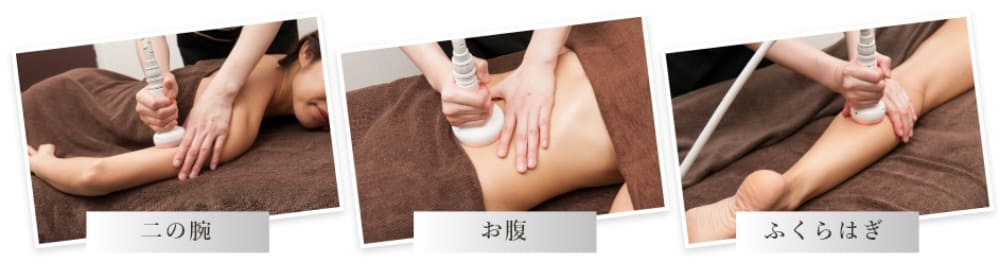 40℃程度の温度で電気刺激もなくビリビリしないので、ぽかぽか気持ちよく、お客様に負担をかけません。吸引特殊プローブは、大・中と付属しているので、施術しにくい場所までムラなく施術ができます。